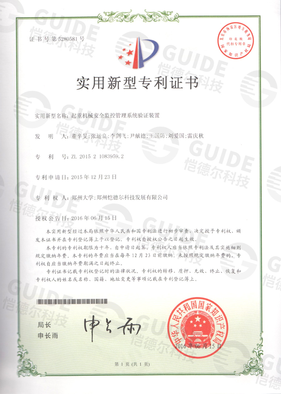 獲得中國特檢院驗證“合格”報告的起重機監控生產廠家,當地質檢部過檢必備材料